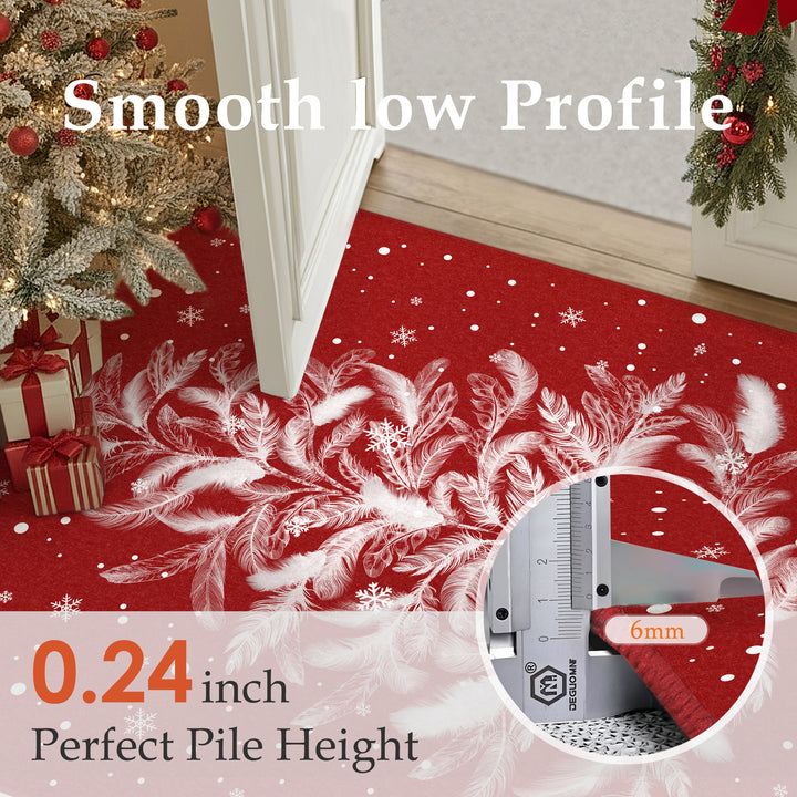 PureCozy Feather Christmas Washable Red Rug – Machine Washable, Pet Friendly & Spill Resistant