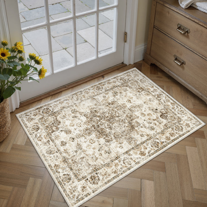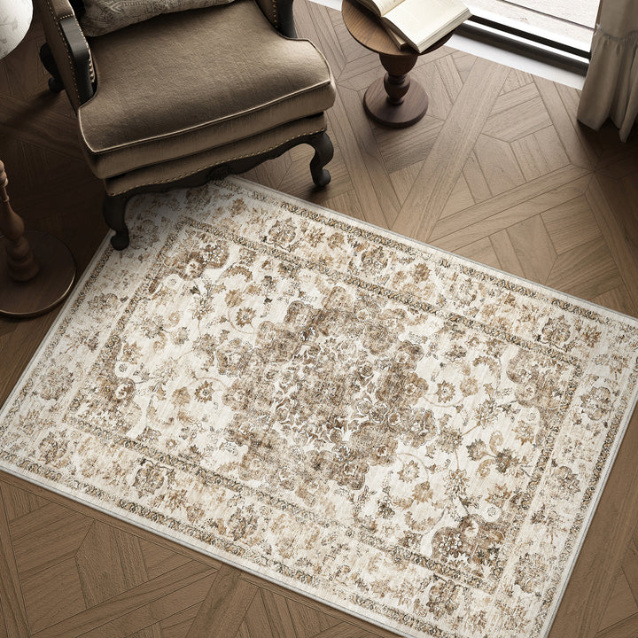 Juliet Vintage Floral Brown Short Pile Traditional Washable Rug