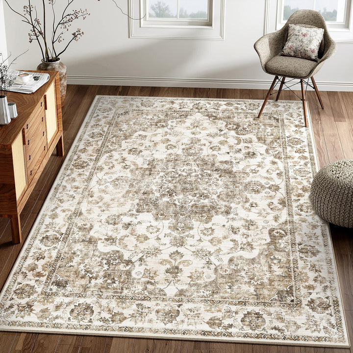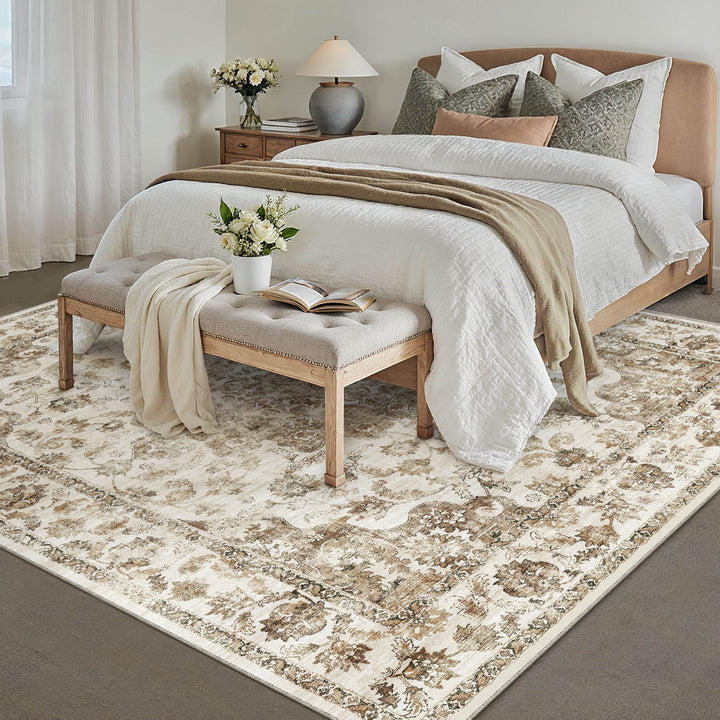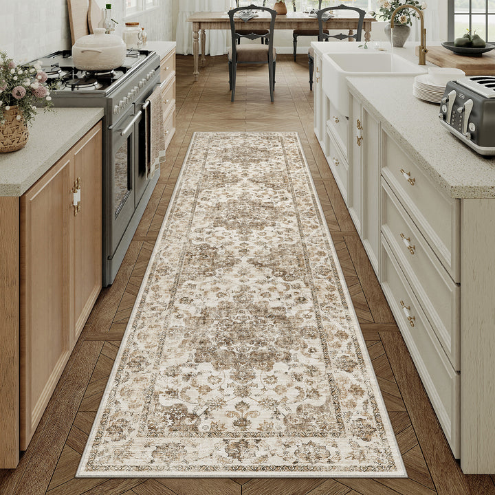 Inspired by timeworn Persian textiles and soft floral patterns, Juliet brings a romantic, lived-in charm to any space. Its muted light brown tones and distressed vintage finish add warmth and depth, while remaining effortlessly versatile.