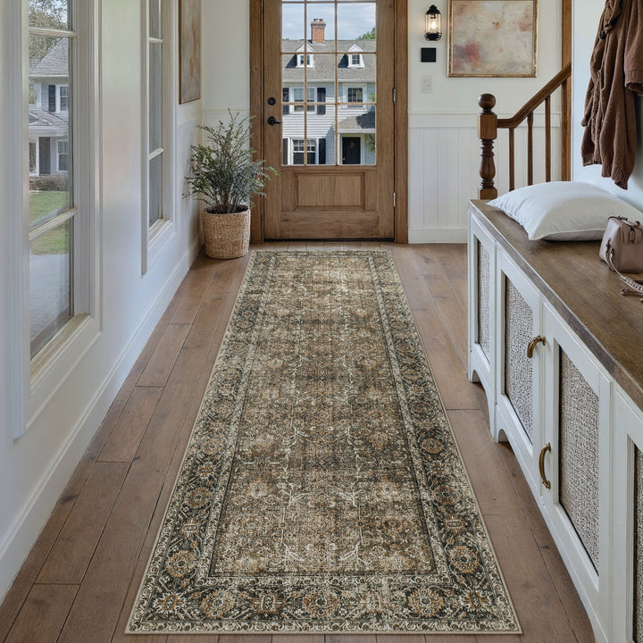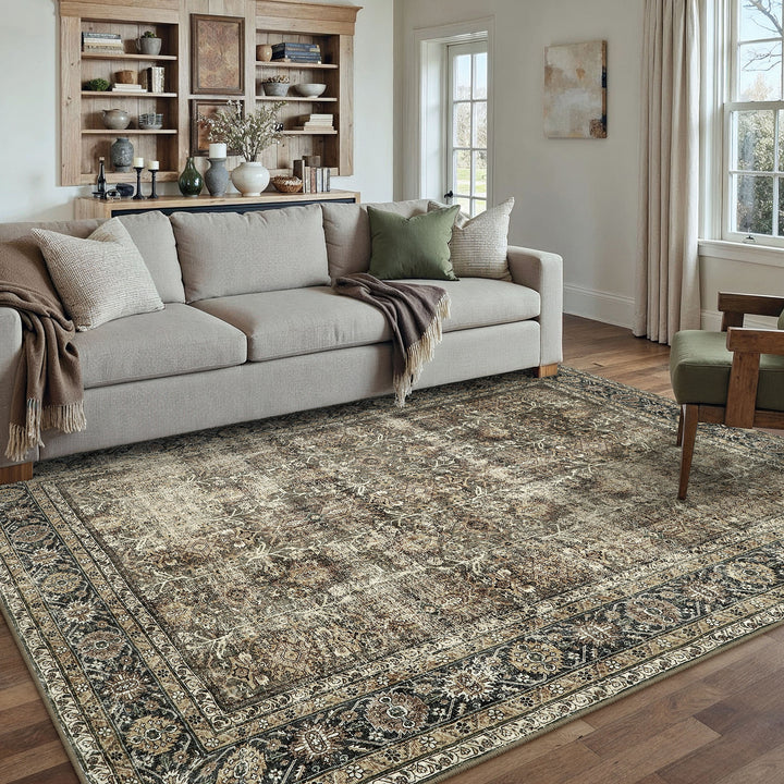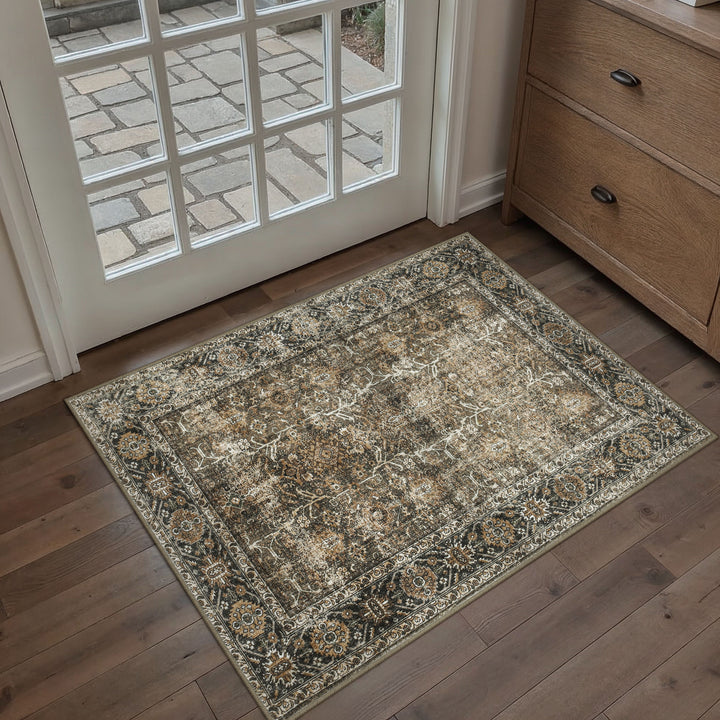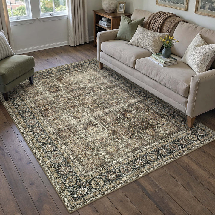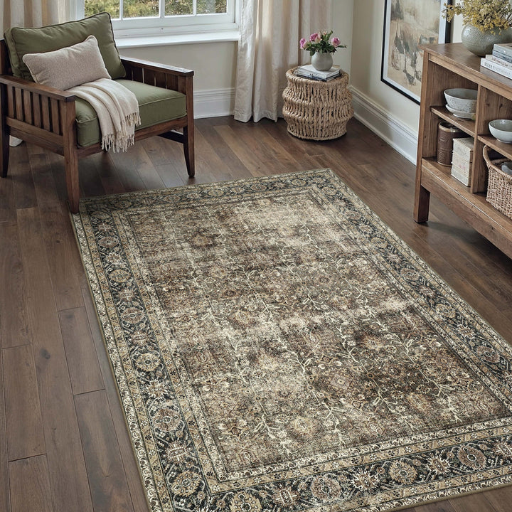 Selma Persian Vintage Brown Short Pile Distressed Washable Rug