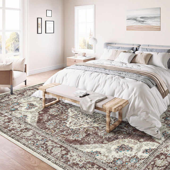 Designed for real-life comfort, it’s stain-resistant, pet-friendly, and machine washable — bringing both beauty and practicality to your everyday life. The non-slip backing ensures steady placement, even in high-traffic areas.
