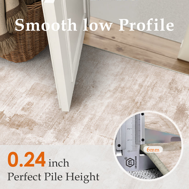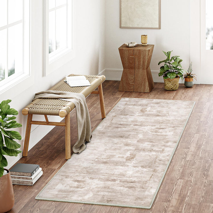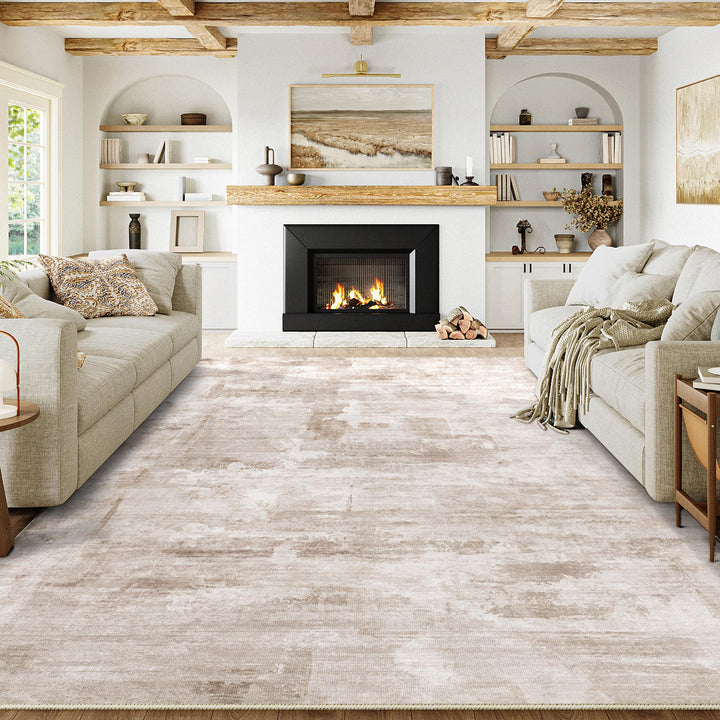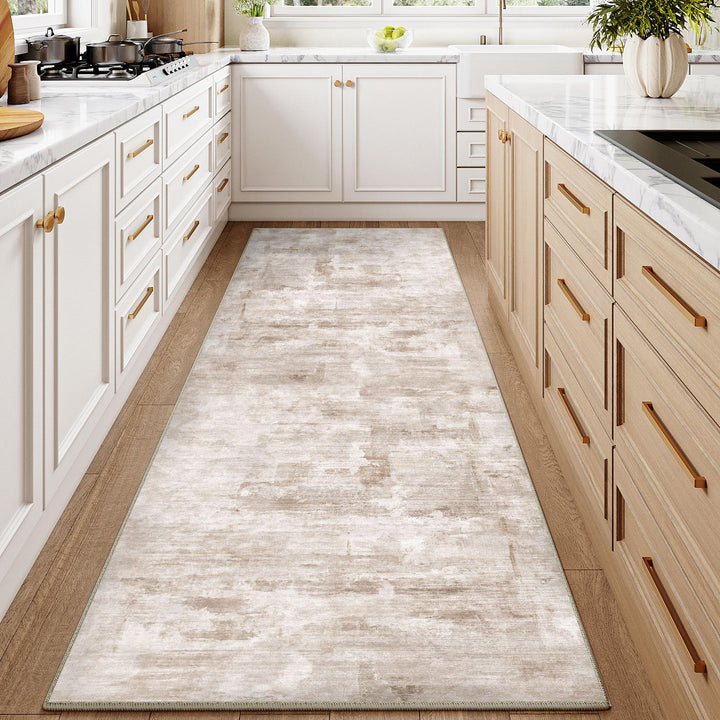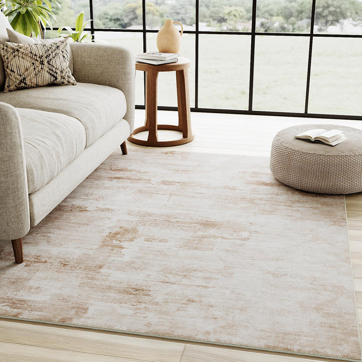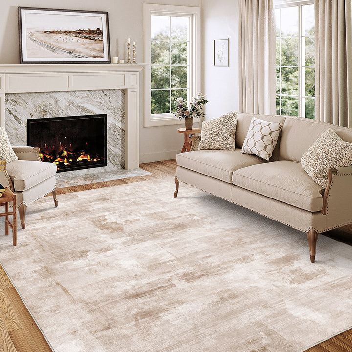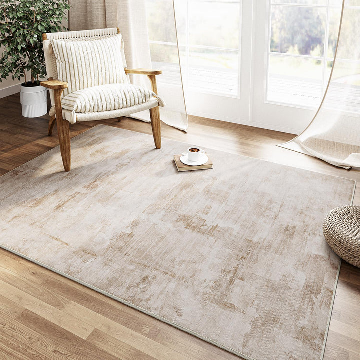 Monet Modern Abstract Beige Short Pile Washable Area Rug