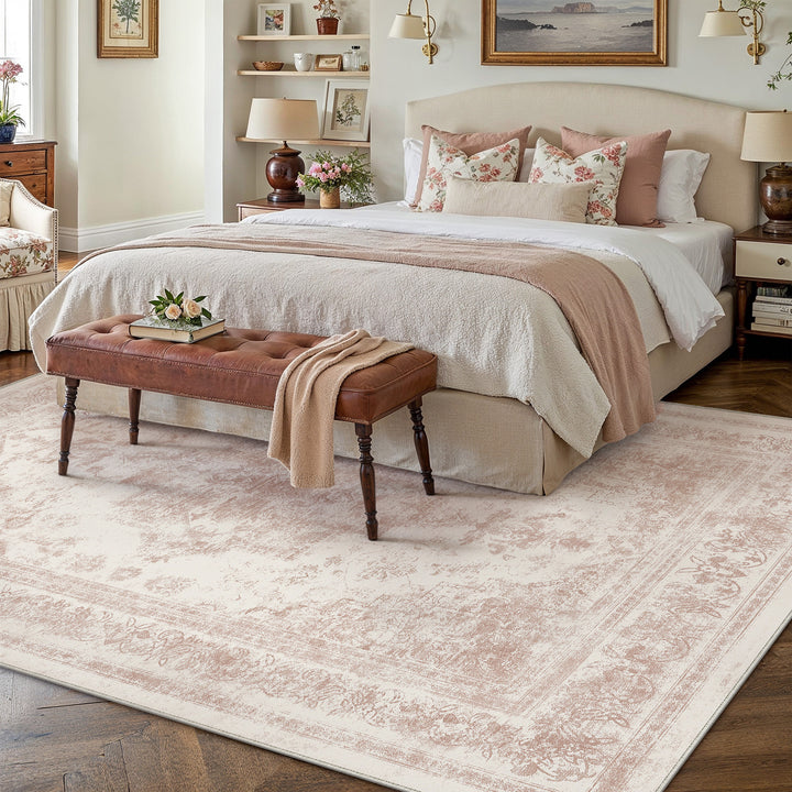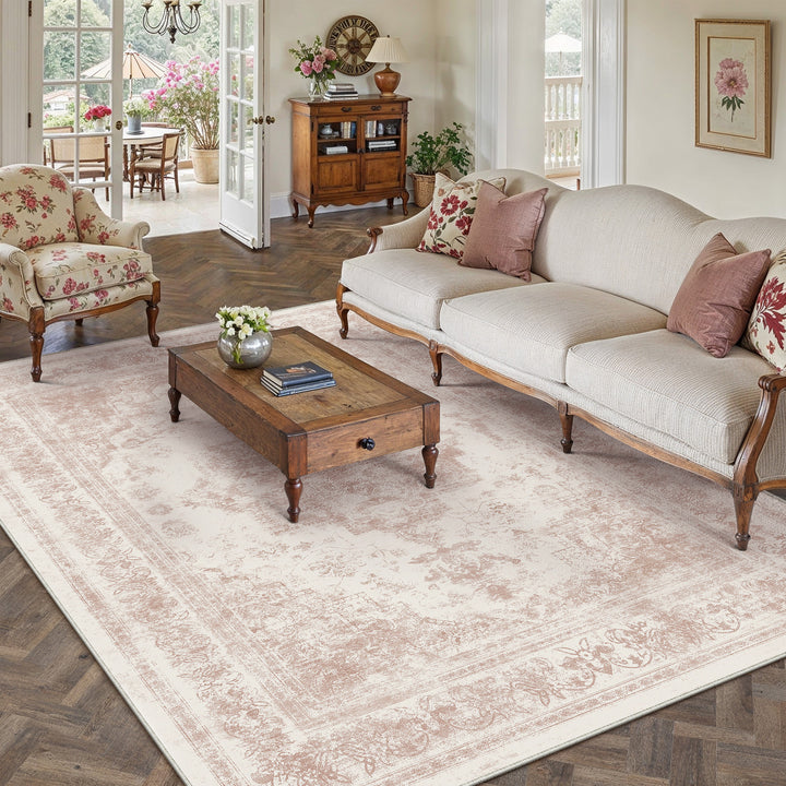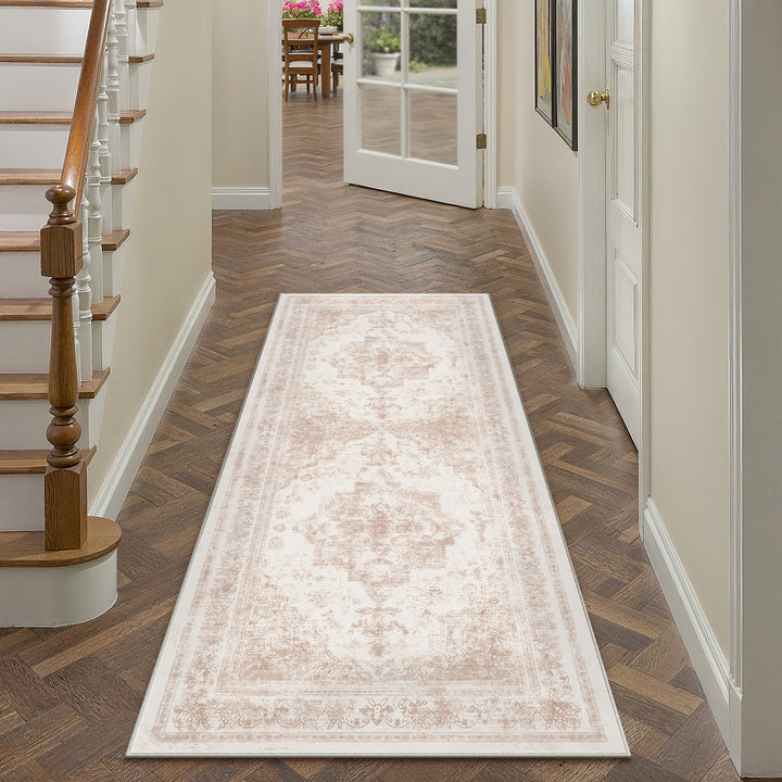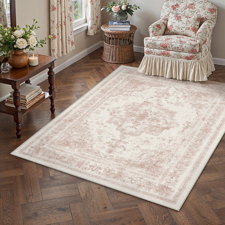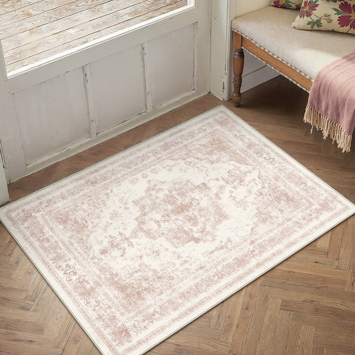 Nourah Vintage Persian Medallion Pink Distressed Washable Rug