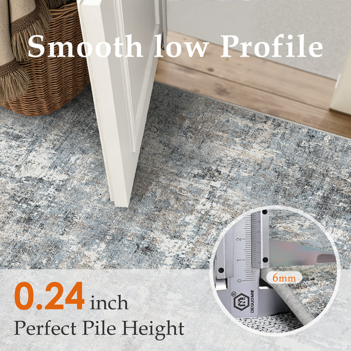 Available in multiple standard rug sizes—from 2x3 and 3x5 up to 9x12 rugs—Reverie is the perfect modern rug for any room. The muted abstract pattern works beautifully as a bedroom rug, dining room rug, or even as an elegant entryway rug. And thanks to its washable design, maintenance is effortless—just toss it in the wash and lay flat to dry.