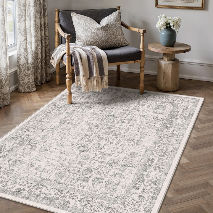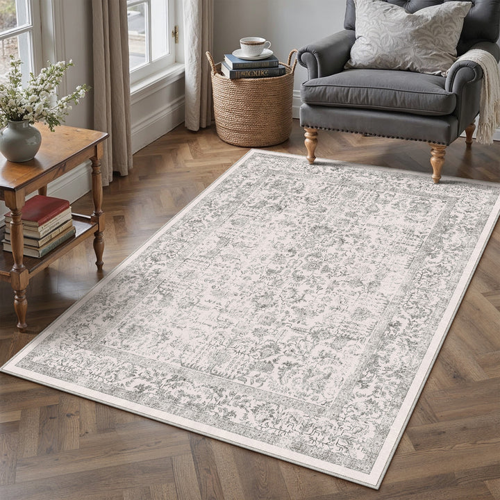 Sylva Vintage Persian Floral Gray Distressed Washable Rug